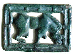 | Les grandes plaques de bronze qui étaient cousues ou fixées sur les vêtements des chefs, les cuirasses ou les selleries des chevaux, dans les yourtes et les charriots, s'inspiraient principalement de l'univers animalier qui fait la caractéristique de l'art des steppes. Certaines plaques avaient d'autres usages, boucles de ceinture, harnachement des chevaux, etc., selon les anneaux, les bélières qui se trouvent au revers. La dimension de ces objets permettait des jeux plastiques d'un autre type, plus subtils, plus travaillés et parfois plus chargés. | ||||||||