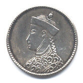 Les roupies pour le Tibet Pour concurrencer les roupies des Indes au portrait de la Reine Victoria qui circulaient largement au Tibet à partir du Népal, les autorités chinoises décidèrent en 1898 de frapper des monnaies similaires. Le droit, comme le revers, s'inspire de la pièce britannique : au droit, le buste de l'empereur Dezong (Guang Xu) qui porte le chapeau mandchou avec le bouton et les cordelettes, est vêtu d'un riche costume brodé identique à celui de Victoria; les cheveux sont tressés en une natte qui pend sur l'arrière du cou; au revers, dans une couronne de rinceaux fleuris (qu'on retrouve sur certaine pièces d'argent du Xinjiang), la mention Sichuan sheng zao 四川省造, «frappé dans la province du Sichuan». Les émissions s'étendent sur les années 1898 à 1905. On frappa des roupies, des demi et des quarts de roupies.