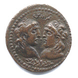 Buste de face, cheveux dénoués, en périphérie, Al melek al 'âlam al 'âdil Najm al dîn Melek Diyarbakìr. Au revers, Prince de face portant une couronne de type sassanide, en périphérie la titulature du prince, Âbu al muzafar Âlpî bin Timurtâsh bin Îl Gâzî bin Ârtuq, et la date 558h (1162). 10,49 gr. SS-29/1.